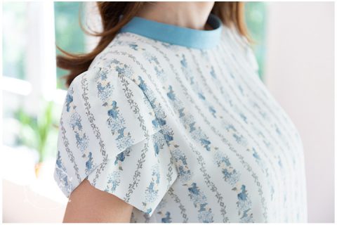 เสื้อทำงาน คอปิด เนื้อชีฟองรีดง่าย พิมพ์ลายดอกไม้ สวยสุภาพ แขนสั้นซ้อนทรงกลีบบัว ใส่ไปทำงานได้หวานๆ เลย