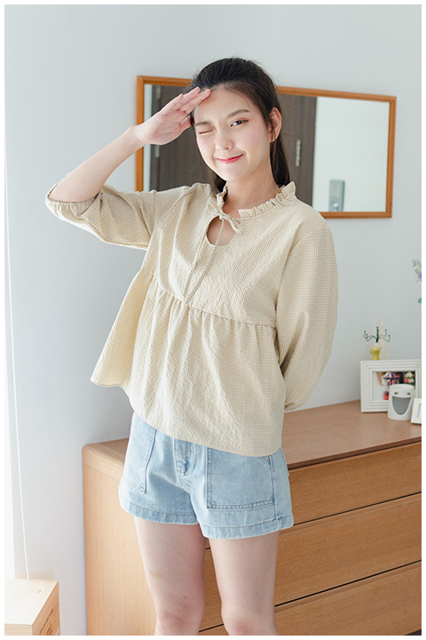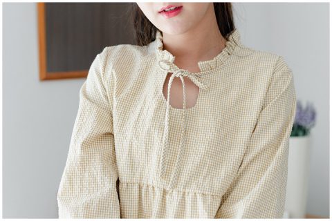 NT2002 Frill & Bow Collar Blouse – Yellow
