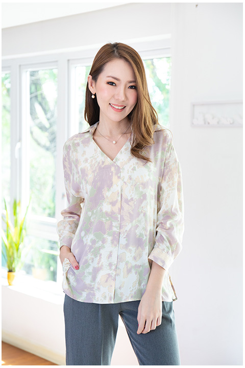 NT2026 Abstract Garden Loose Blouse – Lavender