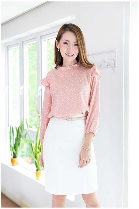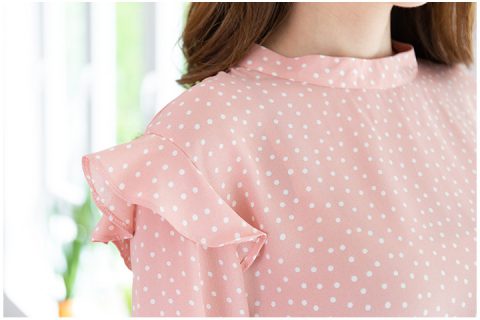 NT2061 Ruff Shoulder Dot Blouse – Pink