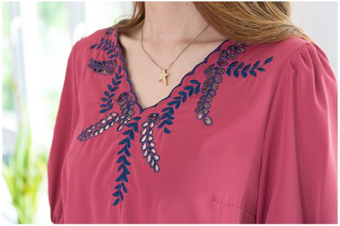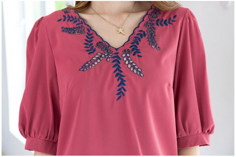 เสื้อคอวีขอบหยักแต่งงานปักฉลุสวยงามรอบคอเสื้อ แขนบอลลูนเบาๆ ด้านหลังผ่าซิปซ่อน เนื้อผ้าดีนิ่มลื่น สัมผัสเย็นๆทิ้งตัว ผ้าไม่บาง สีสวยมากเลย
