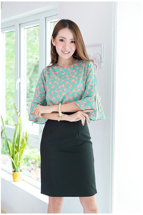เสื้อทำงานสวยสุภาพพิมพ์ลายดอกไม้ เนื้อผ้านิ่มมม สัมผัสนวลๆ ใส่สบายที่สุด รีดง่ายเหมือนเดิมเลย ด้านหลังผ่าหยดน้ำติดกระดุม มีต่อปลายแขนทรงกระดิ่งบานออก แต่งสายเย็บฟิกซ์ไว้ผูกโบว์ หวานสวยค่ะ