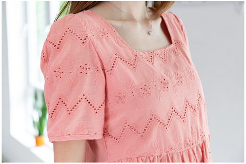 เสื้อสวยอ่อนโยน คอเหลี่ยมตัด ใต้อกจับจีบรูดปล่อยชายระบาย แขนตุ๊กตาแบบไม่พองมากกำลังน่ารัก ด้านหลังเก๋ไก๋ซ้อนทรงป้ายผูกโบว์หลังคอ เนื้อคอตตอนฉลุลายทั่วทั้งตัว ที่สุดของงานสายละมุน