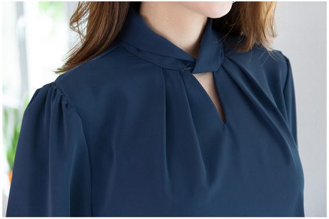 เสื้อแขนยาวคอปิด จับจีบใต้คอ ผ้าดี๊ดี นิ่มเย็นและทิ้งตัว เวลากระทบแสงจะแอบมีความเงานิดๆ สวยแบบที่สุดของที่สุดกับคอเสื้อเก๋ๆ ผ่าสามเหลี่ยม ดีไซน์ขอบคอม้วนเกลียว ด้านหลังคอผ่าหยดน้ำติดกระดุม เนื้อผ้าแบบนี้ทิ้งตัวใส่แล้วหรูหรา ทรงคลาสสิคใส่ได้ตลอดกาล