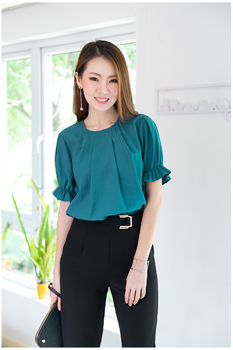 คอกลมปาด ตีเกล็ดเล็กๆ ช่วงอกด้านหน้า แขนตุ๊กตาแบบไม่สั้นมาก จัมพ์ยางยืดปลายแขน ให้ปลายดูพองๆ เล็กน้อย ด้านหลังผ่าหยดน้ำติดกระดุมเปลือกหอยมุก ใช้ผ้าโพลีเอสเตอร์ผสมคอตตอนเนื้อดี ไม่หนามาก แต่ทึบแสง ไม่ต้องใส่ซับในเพิ่ม ใส่สวยมากเลยค่ะตัวนี้