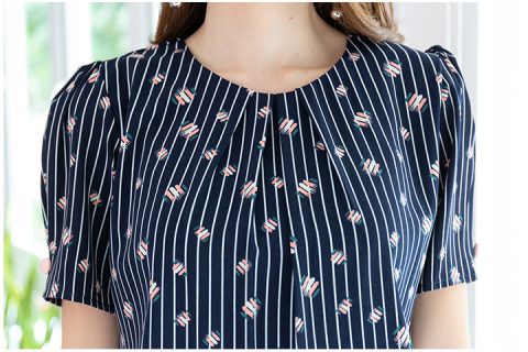 NT2155 Graphic Button Sleeve Blouse – Navy Blue