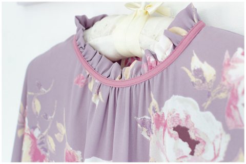 เสื้อทำงานเนื้อชีฟองพิมพ์ลายดอกกุหลาบ ทรงคอปิดจับจีบตั้งๆ แต่งแถบกุ๊น ผ่าหยดน้ำติดกระดุมด้านหลัง แขนยาว 4 ส่วน ผ้าดีเนื้อทิ้งนิดพลิ้วหน่อย ใส่สวยอ่อนโยน ใส่ได้บ่อยเลย