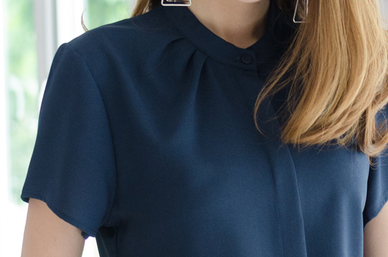 เสื้อเชิ้ตคอจีน ผ่ากระดุมซ่อนด้านหน้า จับจีบช่วงคอด้านหน้า แขนสั้น ทรงสวยเรียบง่าย เน้นคัตติ้งสวยๆ กับผ้าดีๆ สีกรมท่าขับผิวเลย ผ้าใหม่รุ่นนี้เนื้อนิ่มลื่นกว่าเดิม ผิวผ้าเรียบเนียนเนื้อแอบเด้งนิดๆ ไม่โปร่งแสงมากด้วยค่ะ