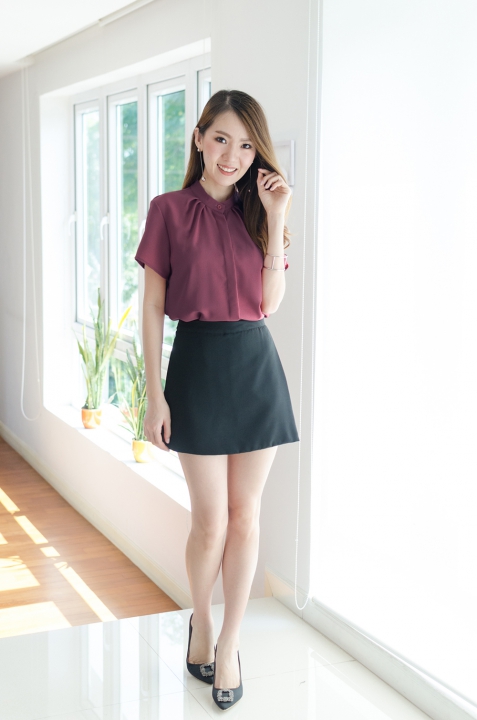 เสื้อเชิ้ตคอจีน ผ่ากระดุมซ่อนด้านหน้า จับจีบช่วงคอด้านหน้า แขนสั้น ทรงสวยเรียบง่าย เน้นคัตติ้งสวยๆ กับผ้าดีๆ เนื้อนิ่มลื่น ผิวผ้าเรียบเนียนเนื้อแอบเด้งนิดๆค่ะ