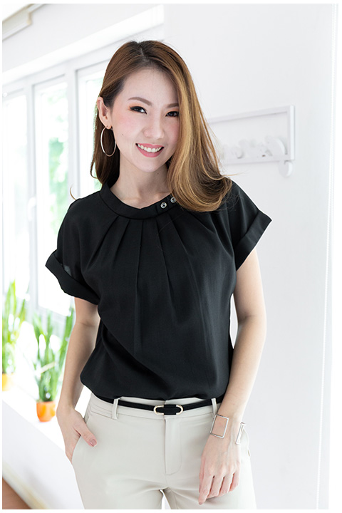 เสื้อแขนล้ำทรงปล่อย คอตั้งจับจีบ ขอบคอแต่งเก๋เป็นสายเข็มขัดพร้อมเย็บกระดุมฟิกซ์ 2 เม็ด ปลายแขนพับทบเย็บกระดุมฟิกซ์แบบช่วงคอ ผ้าไหมอิตาลีเบาสบายระบายอากาศดี สัมผัสเนียนๆไม่ระคายผิว รุ่นนี้เป็นแบบสวม จีบหน้าทำให้ทรงขยายได้นิดๆใส่ง่าย แมทช์ใส่ลำลอง หรือทำงานได้หมดเลย