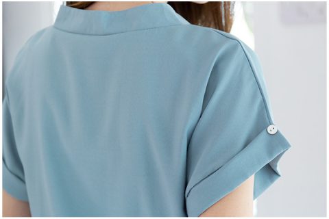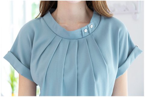 เสื้อแขนล้ำทรงปล่อย คอตั้งจับจีบ ขอบคอแต่งเก๋เป็นสายเข็มขัดพร้อมเย็บกระดุมฟิกซ์ 2 เม็ด ปลายแขนพับทบเย็บกระดุมฟิกซ์แบบช่วงคอ ผ้าไหมอิตาลีเบาสบายระบายอากาศดี สัมผัสเนียนๆไม่ระคายผิว รุ่นนี้เป็นแบบสวม จีบหน้าทำให้ทรงขยายได้นิดๆใส่ง่าย แมทช์ใส่ลำลอง หรือทำงานได้หมดเลย