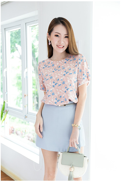 เสื้อทำงานมู้ดหวานๆ ทรงคอกลมสวยเรียบร้อยเลยค่ะ แขนตุ๊กตาแต่งแถบลูกไม้ถักลายกลมๆจิ๋วๆ ผ่าหยดน้ำหลังคอติดกระดุมมุก ใช้ผ้าเนื้อนิ่มพิมพ์ลายทุ่งดอกไม้ น่ารัก แบบแมทช์ง่ายแน่นอน