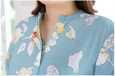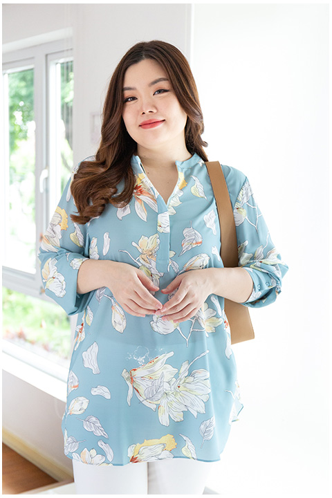 เสื้อสีนุ่มๆพิมพ์ลายดอกไม้ ทรงทูนิค คอจีนผ่าซิปหน้า ขอบคอไม่สูงมากหลังคอจับจีบกลาง แขนยาวติดกระดุมปลายแขน เนื้อชีน่าเนื้อดีมาก ผ้าทิ้งตัวนิ่มและเย็น เนื้อสัมผัสเนียนใส่แล้วรู้สึกเหมือนได้รับการดูแลทะนุถนอมเลย^^ ชายเสื้อโค้งเล็กน้อยใส่ทรงปล่อยแบบหลวม ดูสบายๆค่ะ