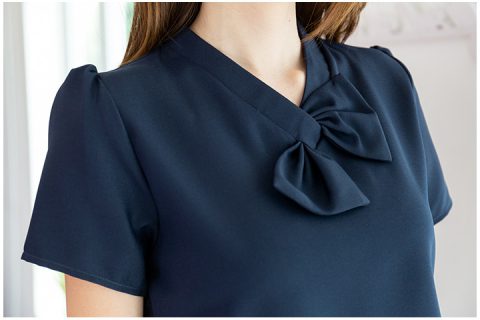 เสื้อทำงานคอวีแต่งโบว์ ทรงแขนตุ๊กตาจับจีบหัวไหล่ เจาะหยดน้ำด้านหลังติดกระดุม ตัดเย็บด้วยผ้าดีดี เนื้อไม่บาง แต่ไม่หนาเกินไป นิ่มๆ ยับยากรีดง่าย ใครตามหารุ่นที่ไม่ต้องดูแลมาก ใส่สวยทันที แนะนำรุ่นนี้เลยค่ะ ทรงเสื้อคอดนิดๆใต้อก ใส่สวยเพรียวเลย