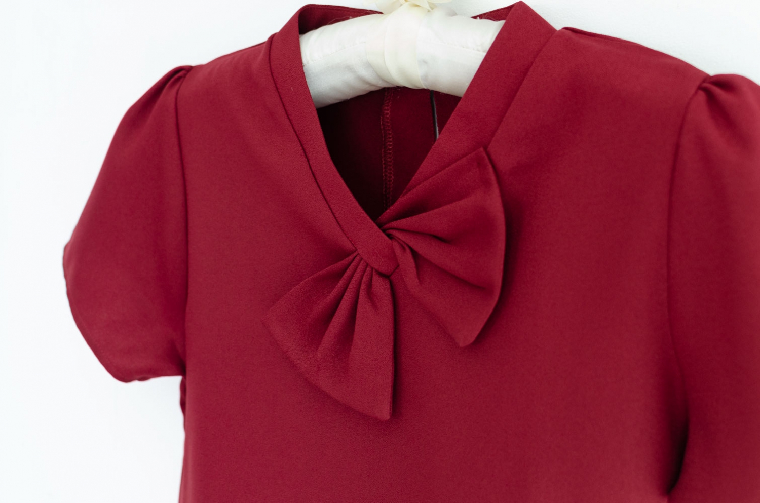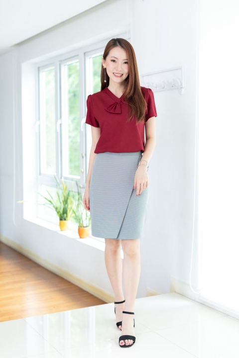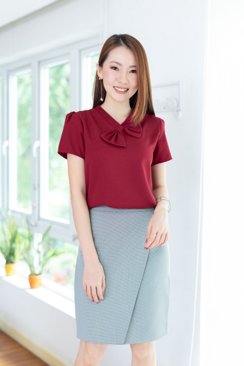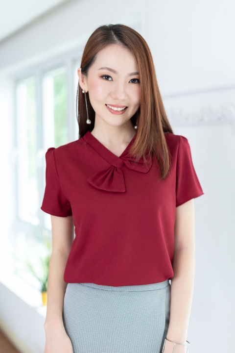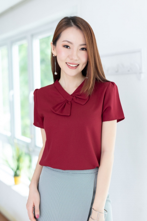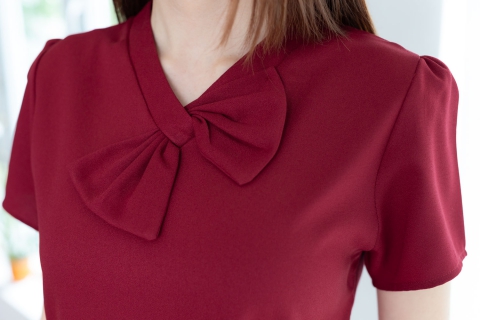 เสื้อทำงานคอวีแต่งโบว์ ทรงแขนตุ๊กตาจับจีบหัวไหล่ เจาะหยดน้ำด้านหลังติดกระดุม ตัดเย็บด้วยผ้าดีดี เนื้อไม่บาง แต่ไม่หนาเกินไป นิ่มๆ ยับยากรีดง่าย ใครตามหารุ่นที่ไม่ต้องดูแลมาก ใส่สวยทันที แนะนำรุ่นนี้เลยค่ะ ทรงเสื้อคอดนิดๆใต้อก ใส่สวยเพรียวเลย