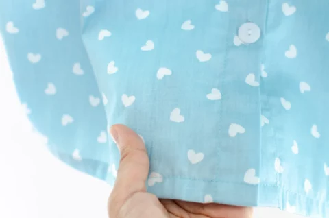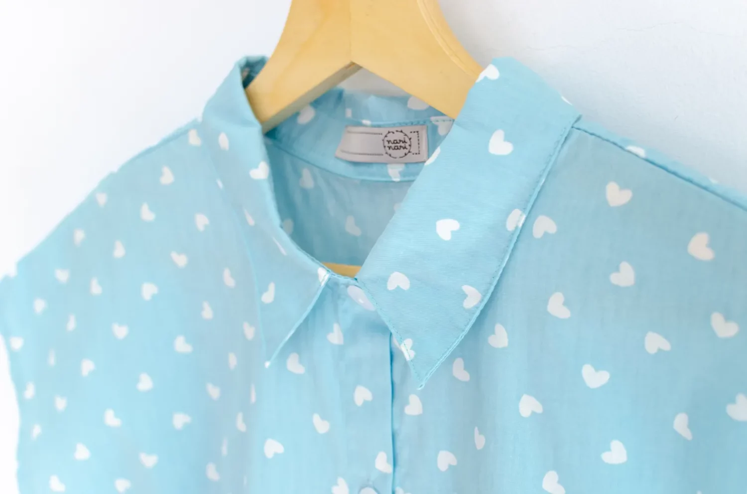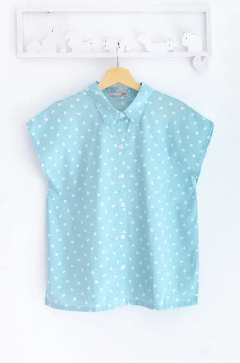 เสื้อคอปกแขนล้ำๆ ทรงสบายๆเหมาะกับวันหยุด ผ่ากระดุมหน้า ตัดเย็บด้วยคอตตอนเนื้อดีพิมพ์ลายหัวใจ ใส่ยังไงก็น่ารักอารมณ์ดี