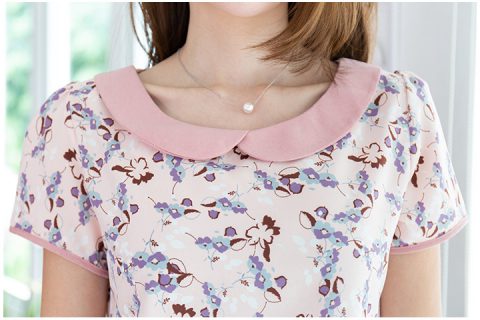 เสื้อลายดอกไม้ ดูดี คอกลมปาดแต่งปกบัวซ้อนกัน สีชมพู น่ารัก แขนสั้น กุ๊นขอบแขนสีชมพู รุ่นนี้เป็นแบบสวมนะคะ ใส่น่ารักๆ สวยสบายตาค่ะ