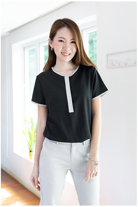 ขอแนะนำเสื้อแนวมินิมอล สวยในแบบเรียบง่าย คอกลม ผ่าหน้าสั้นติดกระดุม แต่งสาบปิดดูเรียบร้อย จบงานด้วยการกุ๊นรอบคอและปลายแขนเสื้อ ใส่ไปทำงานแบบสวยคลีน แต่ดูแพง ใส่ได้นานแน่นอน แพทเทิร์นทรงช่วงตัวไม่กว้างดูพอดีๆตัวค่ะ