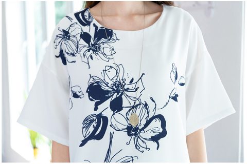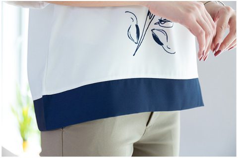 เสื้อพิมพ์ลายเส้นดอกไม้ ใส่ง่ายแมทช์ง่าย จับคู่กางเกงเรียบๆก็ยัง ได้ลุค Elegant แต่งขอบชายเสื้อด้วยผ้าสีพื้นล้อไปกับลายพิมพ์ ผ่าหยดน้ำมีกระดุมคอด้านหลัง รุ่นนี้ผ้าโพลีเอสเตอร์ผสมเนื้อดีมาก ใส่เป็นทรงปล่อยๆสบายโชว์ชายเสื้อสวยงาม