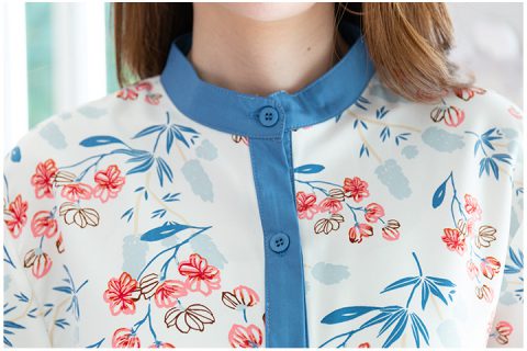เสื้อเชิ้ตลายดอกไม้น่ารักๆ ทรงเรียบร้อย คอจีน ผ่ากระดุมหน้า สาบเสื้อยาวสีสวยเข้ากันกับลาย แขนยาวประมาณข้อศอก ทรงสบายๆแต่ยังสุภาพด้วย ลายดอกไม้เป็นโทนชมพูฟ้า ละมุนๆค่ะ