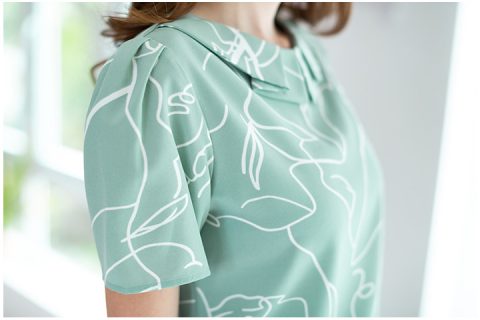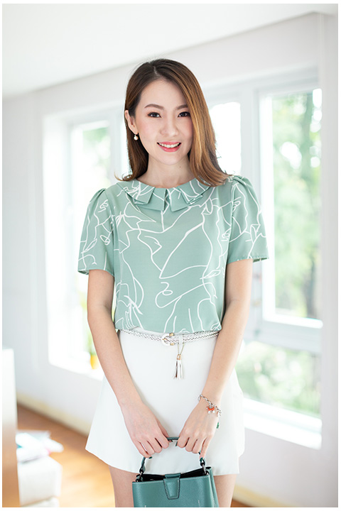 เสื้อน่ารัก แต่งปกบัวแบบพับปลายทบเก๋ๆ แขนสั้นจับจีบซ้อนตรงต้นแขน ดูหวานๆ ใสๆ เจาะหยดน้ำติดกระดุมด้านหลัง ผ้าอิตาลีเนื้อนิ่มสีสวย พิมพ์ลายเส้นกราฟิกงามตลอดๆค่า
