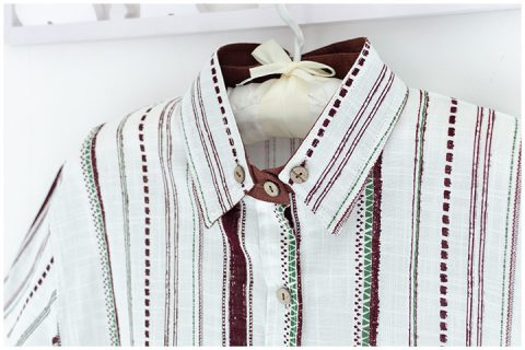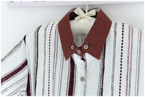 เชิ้ตทรงไม่สั้นไม่ยาว ผ้าดี๊ดี Texture งาม มู้ดชิลๆ ตัวผ้าพิมพ์ลายริ้วสลับหลากสี ผ่าหน้า ใช้กระดุมกะลามะพร้าว ชายเสื้อผ่าข้างสั้น คูลสุดกับคอจีน ตั้งนิดๆ มาพร้อมปกแบบถอดออกได้ ติดกระดุมแล้วได้ทรงปกแหลม แถมกลับด้านปกก็จะกลายเป็นลายเดียวกับตัวเสื้อ ใช้ได้ทั้ง 2 ฝั่ง! ตัวเดียวได้ 3 ลุคเลย