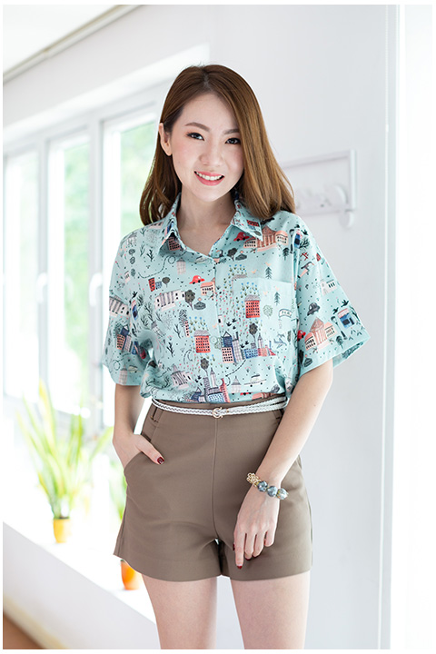 เชิ้ตน่ารัก แบบว่าเออเบิ้น มีลายตึกรามฯและสวนมาในลายเส้นกุ๊กกิ๊ก ผ้านิ่มๆดีงาม คอปก ผ่ากระดุม มีกระเป๋าคู่ด้านหน้า ทรงเสื้อไม่ยาวมาก ไว้ใส่กับเอวสูงหน่อยๆ ก็จะคิ้วถึไม่ไหว ///>^<///