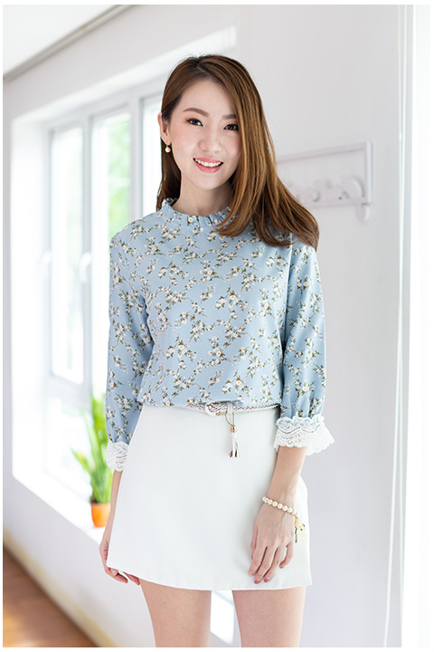 เสื้อทำงานแนวหวานๆมาแล้วค่ะ เอาใจสายอ่อนโยนขั้นสุด รุ่นนี้คอจีบตั้งนิดๆ ผ้าสีสวยพิมพ์ลายดอกไม้ แขนสี่ส่วน จั๊มปลายแขนแต่งขอบลูกไม้ ความน่ารักพุ่งใส่มากๆ สวยหวานเต็มสิบไปเลยค่า