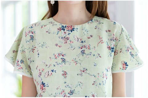 NT2326 Butterfly Sleeve Floral Blouse – Pandan Green