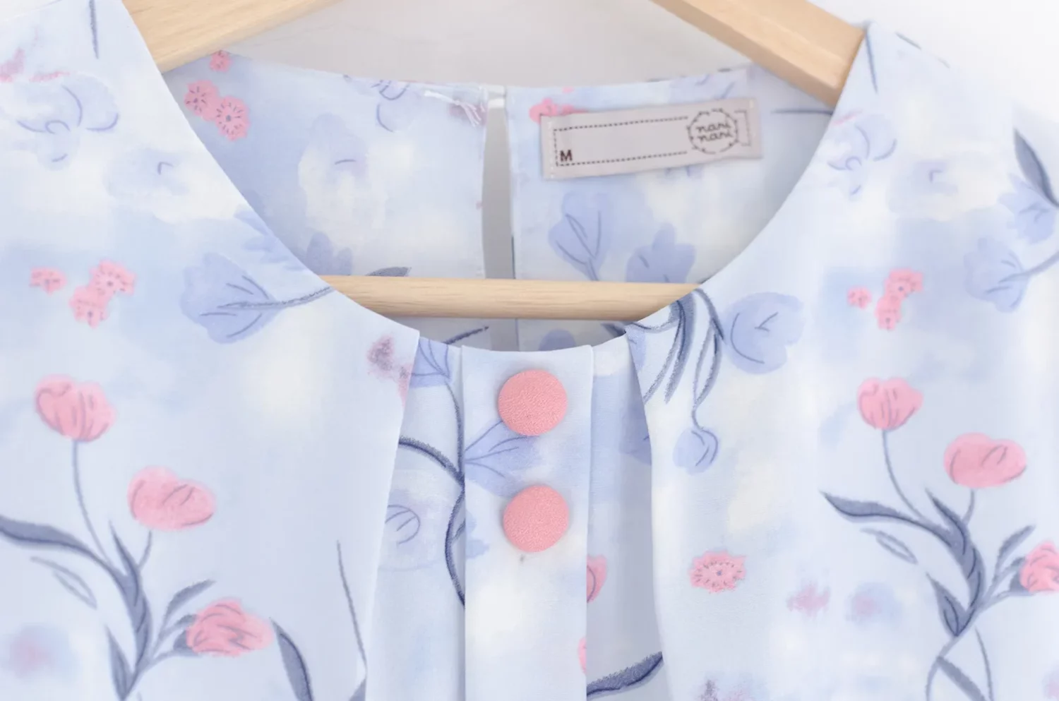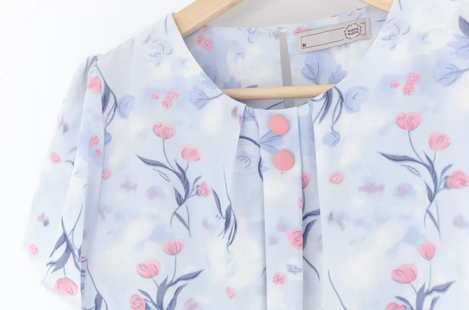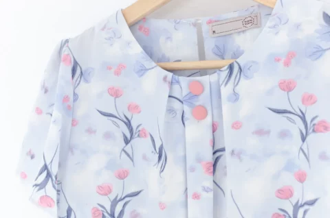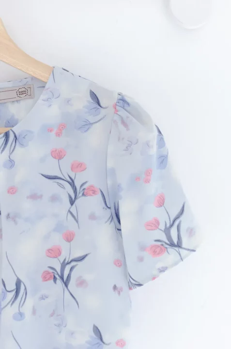 NT2328 Double Button Placket Blouse – Blue Tulip