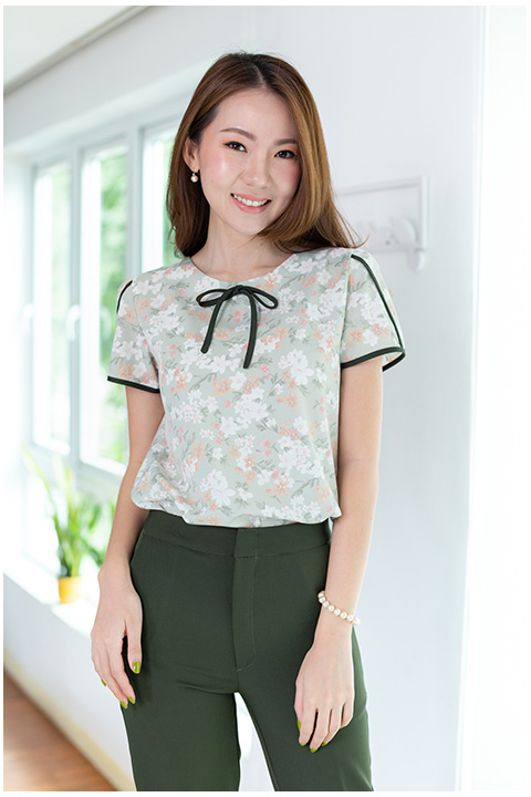 เสื้อทำงานผ้านิ่มสบาย เนื้ออิตาลีที่ทุกคนคุ้นเคย มาในลายพิมพ์หวานดอกไม้แบบเบาๆ คอกลมแต่งสายโบว์ด้านหน้า ตัวแขนรุ่นนี้จับซ้อนทรงกลีบดอกไม้ กุ๊นตัดขอบสีพื้นทำให้ดูเด่นขึ้นมา เวลาใส่ก็จะน่ารักประมาณนี้เลยค่า ใส่คู่กระโปรงก็ส่งให้ดูหวานเข้ากัน ใส่คู่กางเกงผ้าสีพื้นก็ Elegant ค่ะ