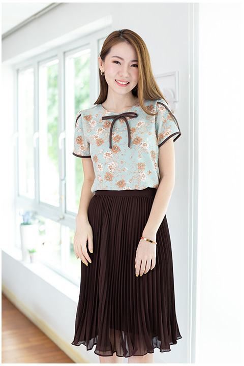 NT2333 Bow Petal Sleeve Blouse – Choco-Blue