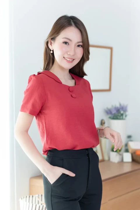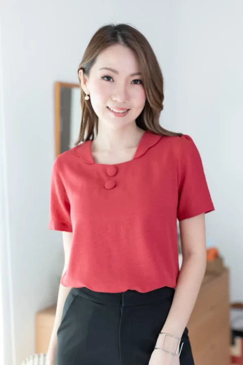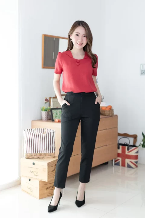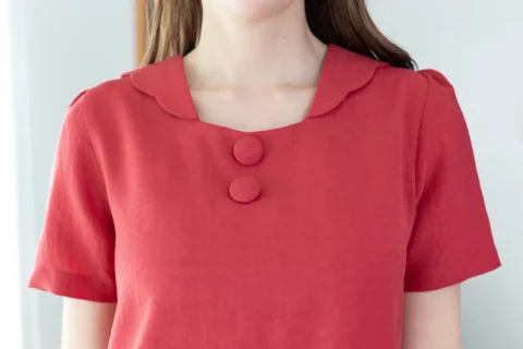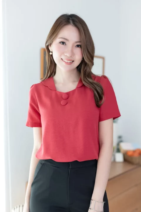 ความน่ารักแบบพร้อมส่งกับเสื้อทรงสวย คอเหลี่ยมแคบๆแต่งปกหยักด้านข้าง ด้านหน้าใช้กระดุมปั๊มเม็ดใหญ่เย็บคู่กัน รุ่นนี้พิเศษที่เนื้อผ้าโพลีเอสเตอร์ผสมทอลายสลาฟ มีน้ำหนักแอบทิ้งตัวนิดๆกำลังดี น่ารักคอนเฟิร์ม! *รุ่นนี้ทรงคอดใต้อก