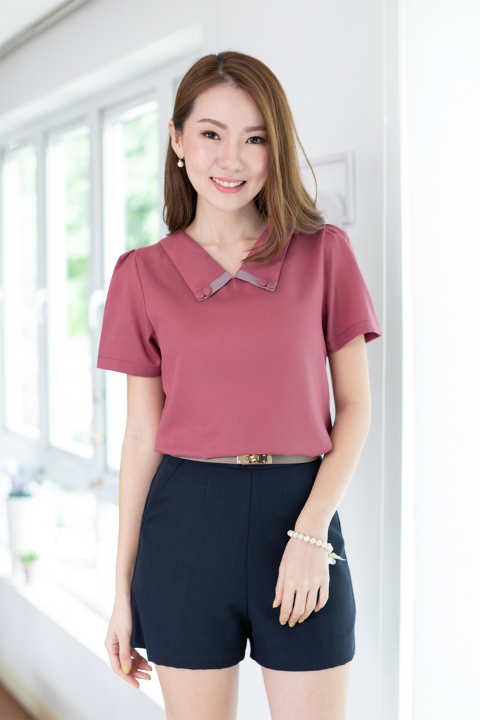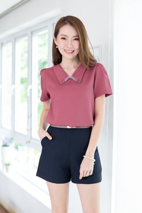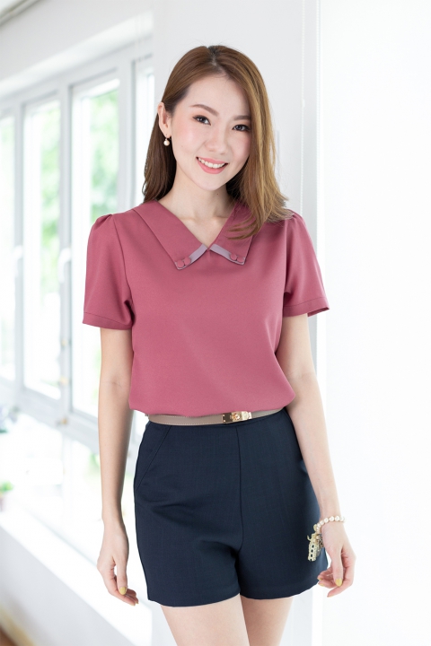 เสื้อคอวี ปกแหลม เล่นดีเทลต่อแถบและแต่งกระดุมคู่ ทรงใส่ง่าย ตัดเย็บด้วยผ้าดีดี เนื้อไม่บาง แต่ไม่หนาเกินไป นิ่มๆใส่สบายผิว ทรงแขนสั้น สุภาพเรียบร้อย พกติดตู้ไว้คุ้มค่ะ