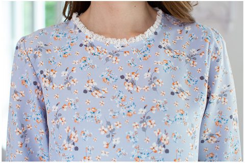 เสื้อทำงานแนวหวานๆแต่งผ้าลูกไม้เนื้อนิ่มที่คอและปลายแขน เสื้อสีสวยพิมพ์ลายดอกไม้ แขนสี่ส่วน จั๊มปลาย งานดูนุ่มนวล สวยหวานเต็มสิบไปเลยค่า