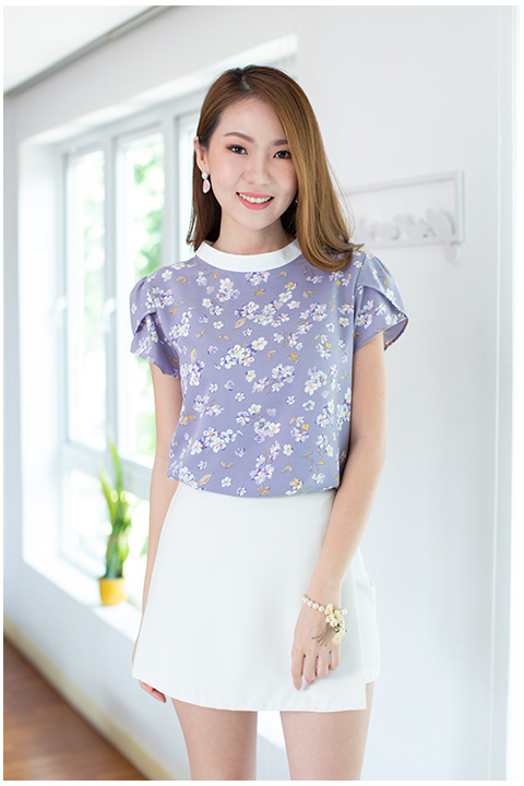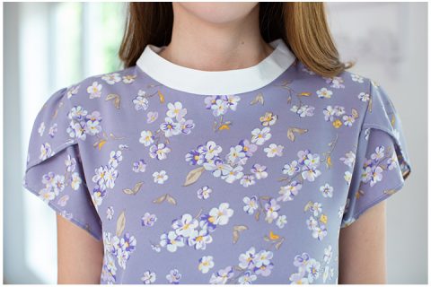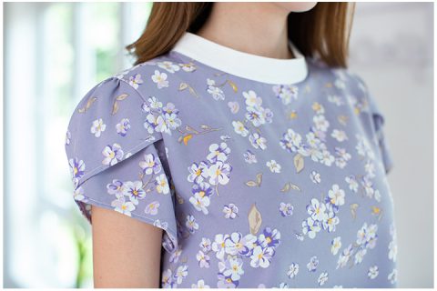 เสื้อทำงาน คอปิด เนื้ออิตาลีไม่บางมาก รีดง่ายด้วยค่ะ พิมพ์ลายดอกไม้ สวยและสุภาพ แขนสั้นซ้อนทรงกลีบบัว ใส่ไปทำงานได้หวานๆ เลย