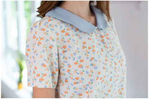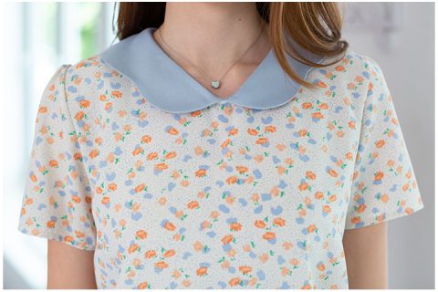 เสื้อคอวีแต่งปกขอบหยักโค้งๆ ขอบปกสีพื้น ตัวเสื้อพิมพ์ลายดอกไม้ ด้านหลังผ่าหยดน้ำติดกระดุมคอ เนื้อผ้าดี๊ดี นิ่มลื่น ใส่สบายไม่ร้อน รีดง่ายมากด้วยนะคะ