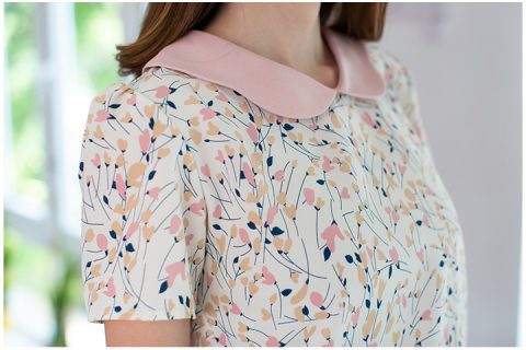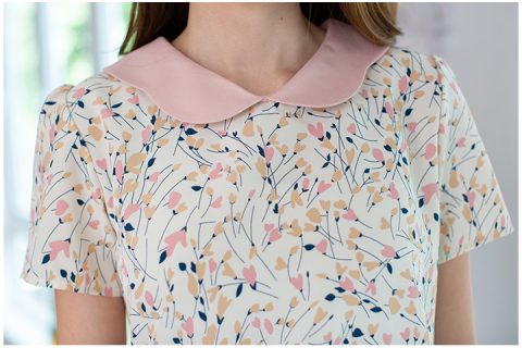 เสื้อคอวีแต่งปกขอบหยักโค้งๆ ขอบปกสีพื้นตัวเสื้อพิมพ์ลายดอกไม้ ด้านหลังผ่าหยดน้ำติดกระดุมคอ เนื้อผ้าดี๊ดี นิ่มลื่น ใส่สบายไม่ร้อน รีดง่ายมากด้วยนะคะ