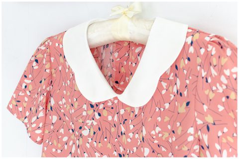 เสื้อคอวีแต่งปกขอบหยักโค้งๆ ขอบปกสีพื้นตัวเสื้อพิมพ์ลายดอกไม้ ด้านหลังผ่าหยดน้ำติดกระดุมคอ เนื้อผ้าดี๊ดี นิ่มลื่น ใส่สบายไม่ร้อน รีดง่ายมากด้วยนะคะ