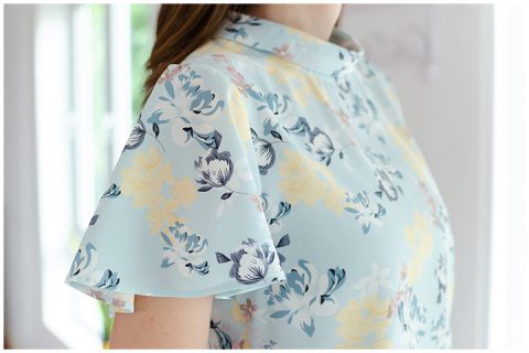 เสื้อทรงงาม ทรงพลิ้ว ดูสวยแบบอ่อนโยน ดีเทลคอม้วนเก๋ไก๋ ต่อแขนผีเสื้อดูหวานๆ แพทเทิร์นคอดเอวเล็กน้อย หลังคอผ่าหยดน้ำติดกระดุม ผ้าเนื้อนิ่ม ยับยากรีดง่าย ดีต่อใจใส่สบายด้วยค่ะ