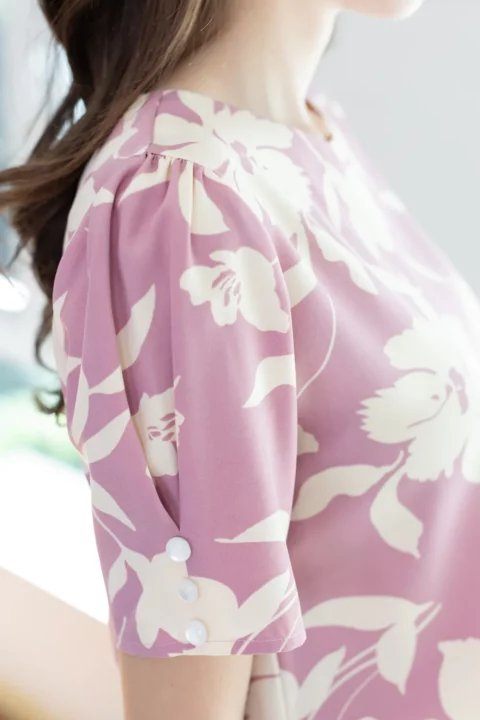 เสื้อลายดอกไม้ทรงยอดนิยมที่ทุกคนรอคอย คอกลม จับจีบปลายแขนดูพองนิดๆ พร้อมประดับกระดุม 3 เม็ด เจาะหยดน้ำติดกระดุมหลังคอ ทรงสวย ผ้านิ่ม รีดง่าย เนื้อเนียนๆ ดูแลง่ายเหมือนเดิมค่า
