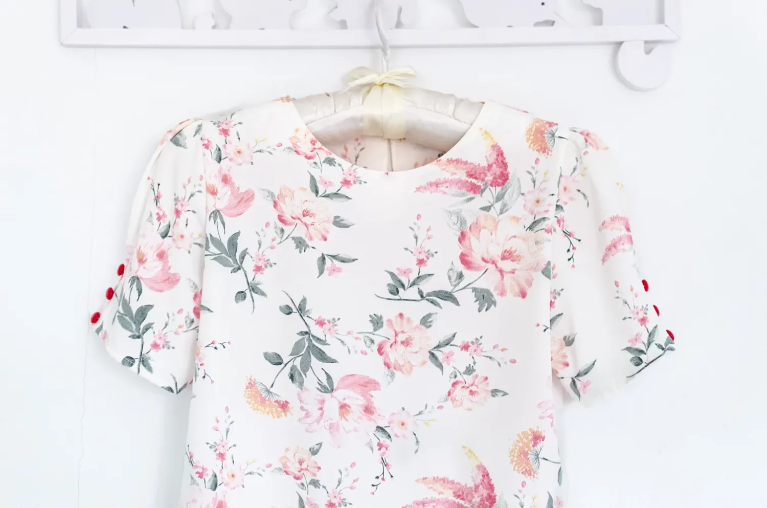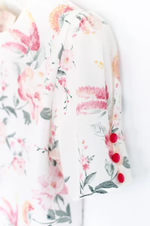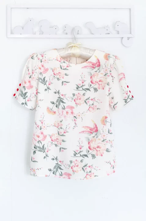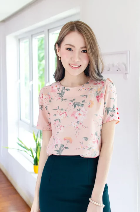 เสื้อลายดอกไม้ทรงยอดนิยมที่ทุกคนรอคอย คอกลม จับจีบปลายแขนดูพองนิดๆ พร้อมประดับกระดุม 3 เม็ด เจาะหยดน้ำติดกระดุมหลังคอ ทรงสวยคอดใต้อกใส่แล้วดูเพรียว ผ้านิ่ม รีดง่าย เนื้อเนียนๆ ดูแลง่ายเหมือนเดิมค่า