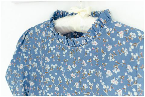 เสื้อทำงานผ้าเนื้อเนียน พิมพ์ลายดอกไม้ คอปิดจับจีบตั้งๆ แขนสั้นจีบตุ๊กตานิดๆแต่งแถบลูกไม้ลายกลมรอบปลายแขน ด้านหลังผ่าหยดน้ำ ติดกระดุม ลายผ้าน่ารักมาก ใส่สวยเด้งค่า