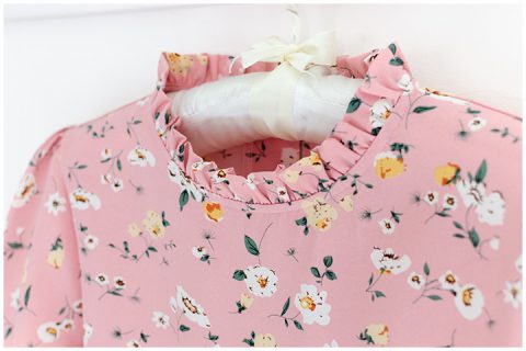 NT2404 Ruff Collar Lacey Floral Blouse – Pink