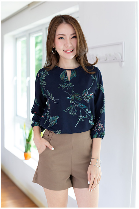 NT2405 Keyhole Tropic Blouse – Dark Navy