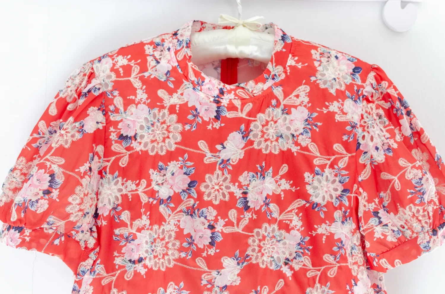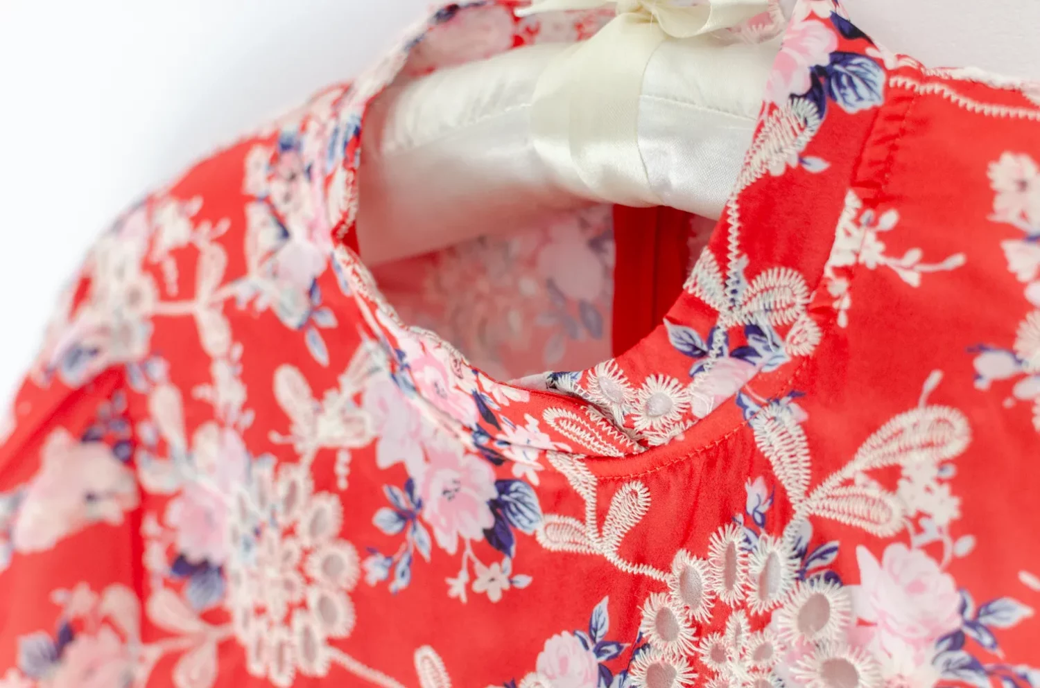 NT2410 Overlap Collar Embroidered Blouse – Red