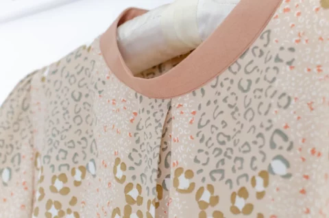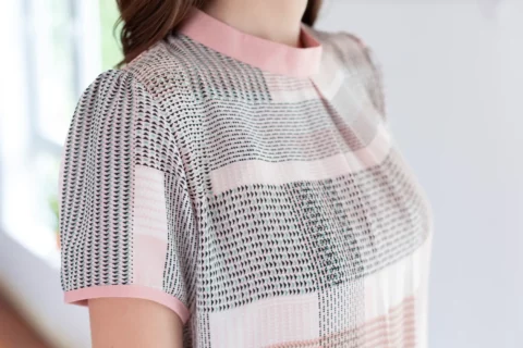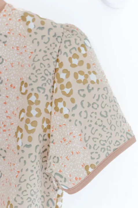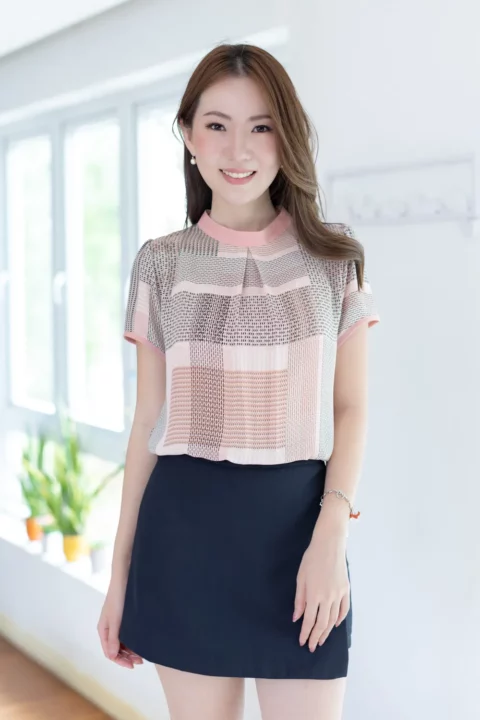 เสื้อชีฟองลายกราฟิก คอปิดตั้ง จับจีบทวิสตรงกลางอก กุ๊นปลายแขน ด้านหลังผ่าหยดน้ำติดกระดุมคอ เนื้อผ้านิ่มๆรีดง่าย เนื้อชีฟองทิ้งๆนิดๆ