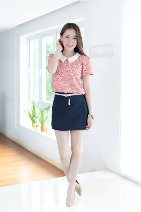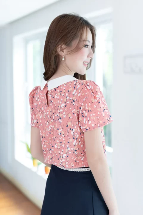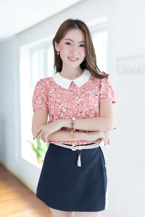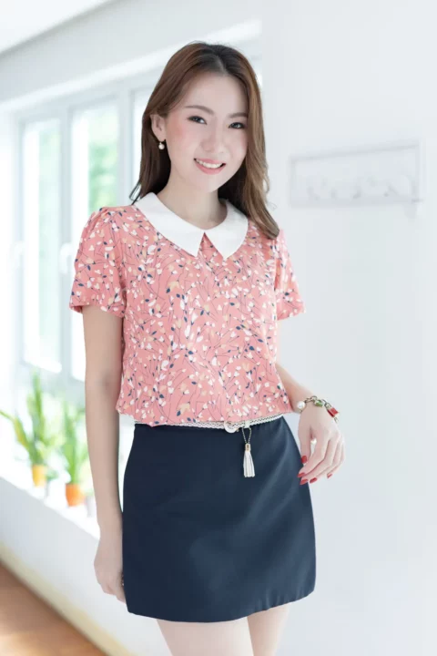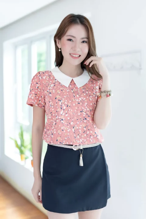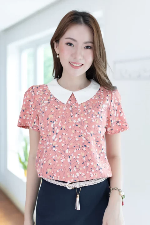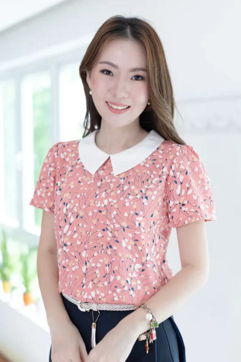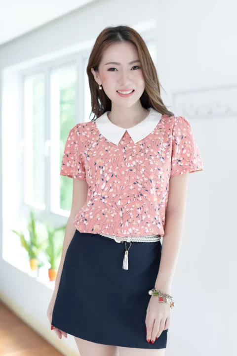 เสื้อปกบัวแหลม พิมพ์ลายดอกไม้ ทรงน่ารักๆ ใส่ทำงานสวยเรียบร้อย เนื้อผ้านิ่มรีดง่าย แขนสั้นสบายๆแบบใส่ง่าย หยิบมาแมทช์ได้ง่ายสวยเลย!