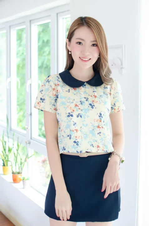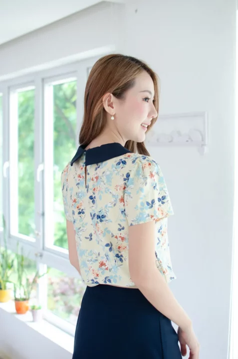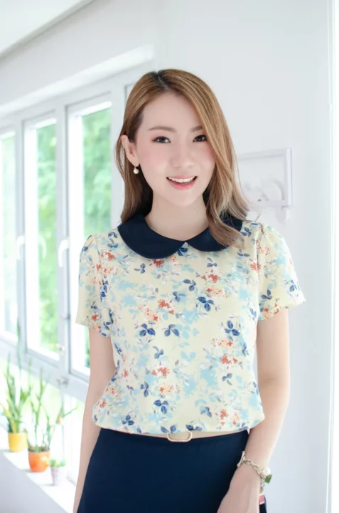 ปกบัวมาแล้วค่า งานยอดฮิตตลอดกาลของคนเรียบร้อย พูดน้อย อ่อนโยน❣️องศาปกจะเป็นทรงป้อมๆป้านๆ รุ่นนี้ทำแพทเทิร์นแบบคอดเบาๆนิดนึงช่วงตัว เนื้อผ้าไหมอิตาลีเนียนๆ ลายพิมพ์ดอกไม้สวยงามเหมือนเดิมเลยค่า