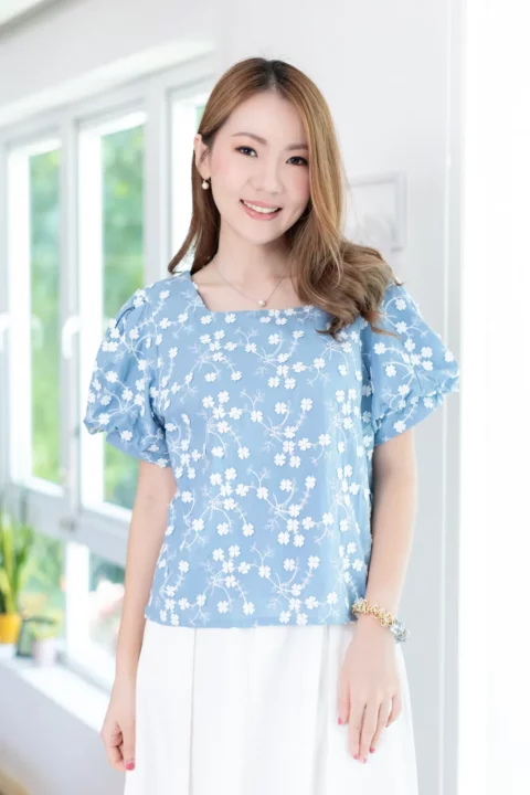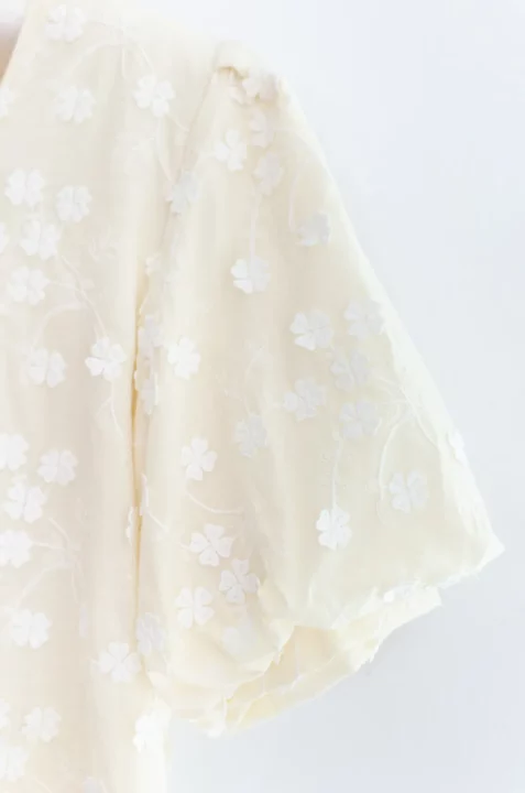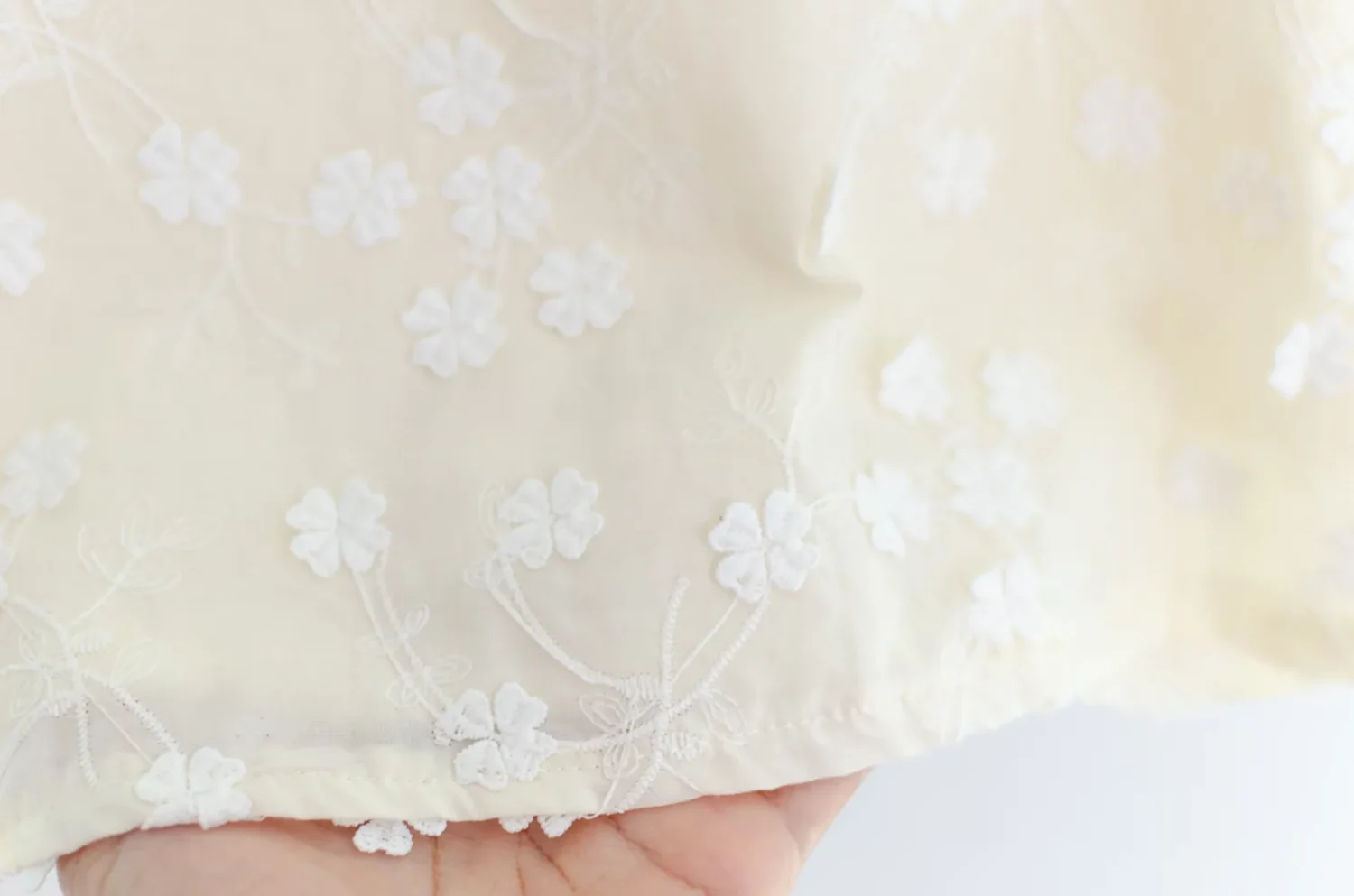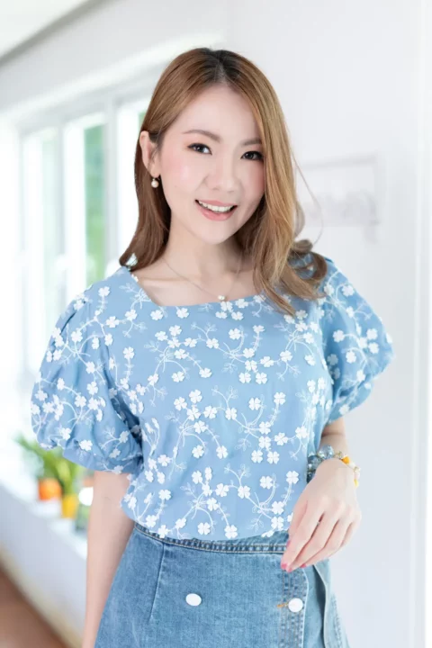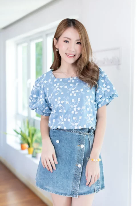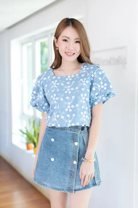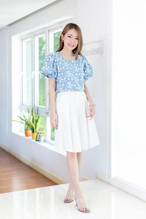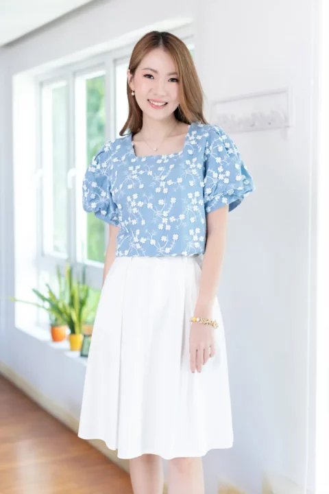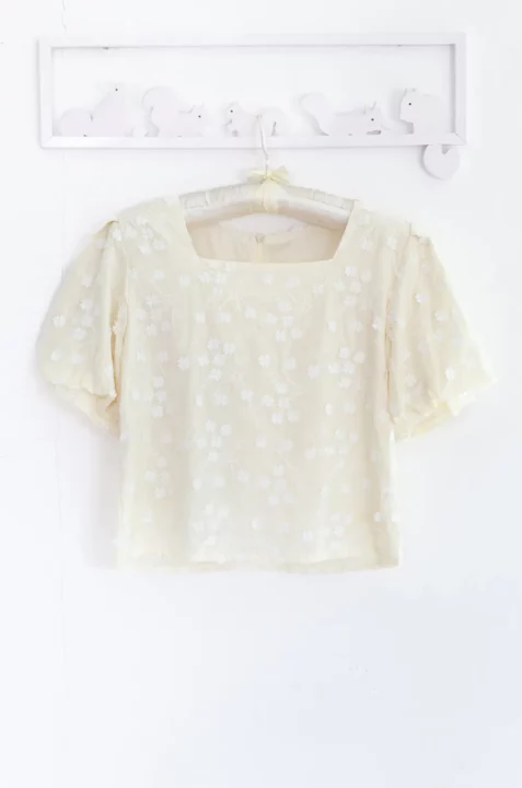 Super Cute! เสื้อครอปสั้นๆสุดจะน่ารัก เนื้อคอตตอนปักตกแต่งลายไม้เลื้อยสีขาว ดอกไม้จิ๋วนูนมีมิติ คอเสื้อเหลี่ยมต่อแขนสั้นทรงบอลลูน ด้านหลังเป็นซิปซ่อนแบบรูดขึ้น พร้อมซับในเต็มตัว ใส่แล้วความอ่อนหวานให้เต็มร้อย น่ารักที่สุดเลย